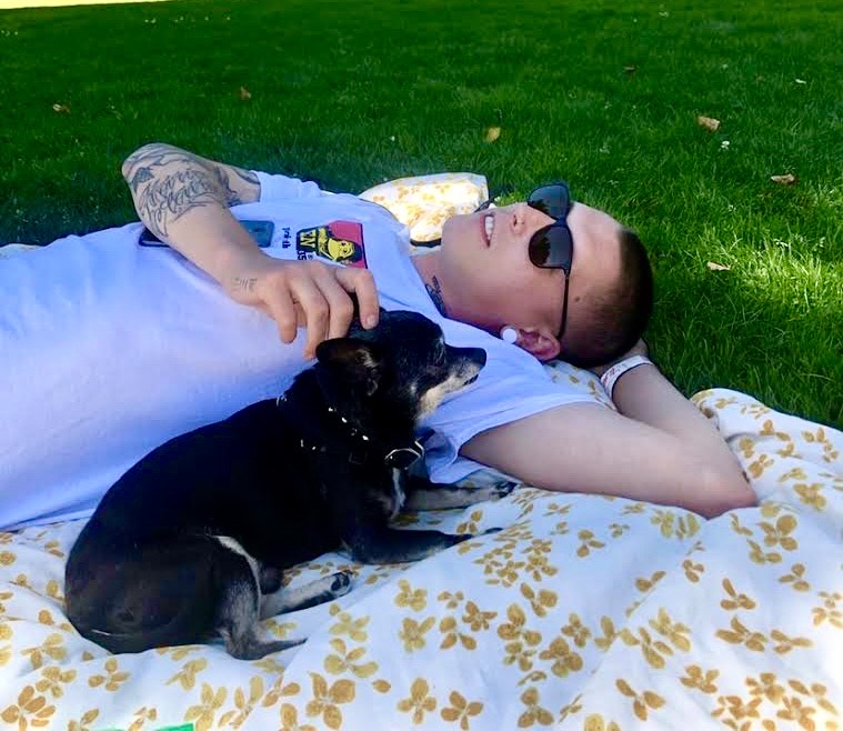 As many of you know, Chico followed him everywhere, and Tristan often took him out Writing, Chico running around his legs as he painted. And Chico stood by him til the very end…he was found laying on top of him on the couch the day he was found in his condo. Cheers to our little OG boy Chico!